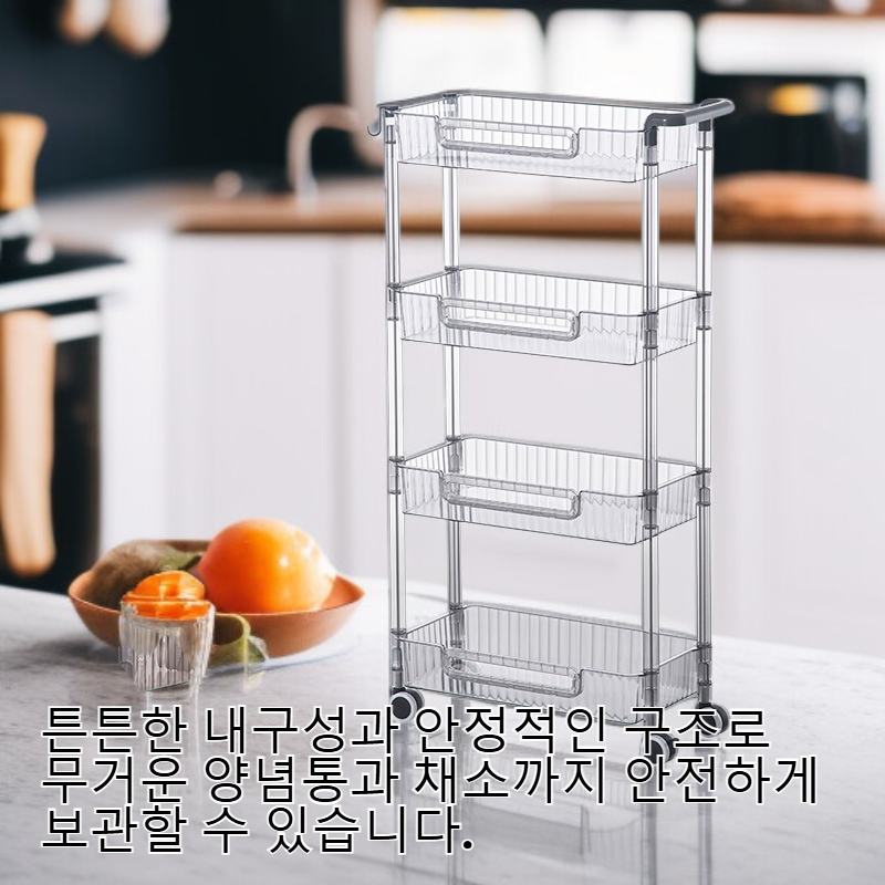 ● 튼튼한 내구성과 안정적인 구조로 무거운 양념통과 채소까지 안전하게 보관할 수 있습니다.