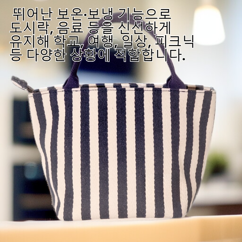스트라이프 프린트 캔버스 토트백, 휴대용 보온 런치백, 학교, 여행, 일, 피크닉용 열차단 쿨러 핸드백