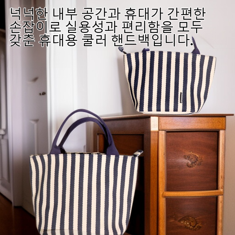 ● 넉넉한 내부 공간과 휴대가 간편한 손잡이로 실용성과 편리함을 모두 갖춘 휴대용 쿨러 핸드백입니다.